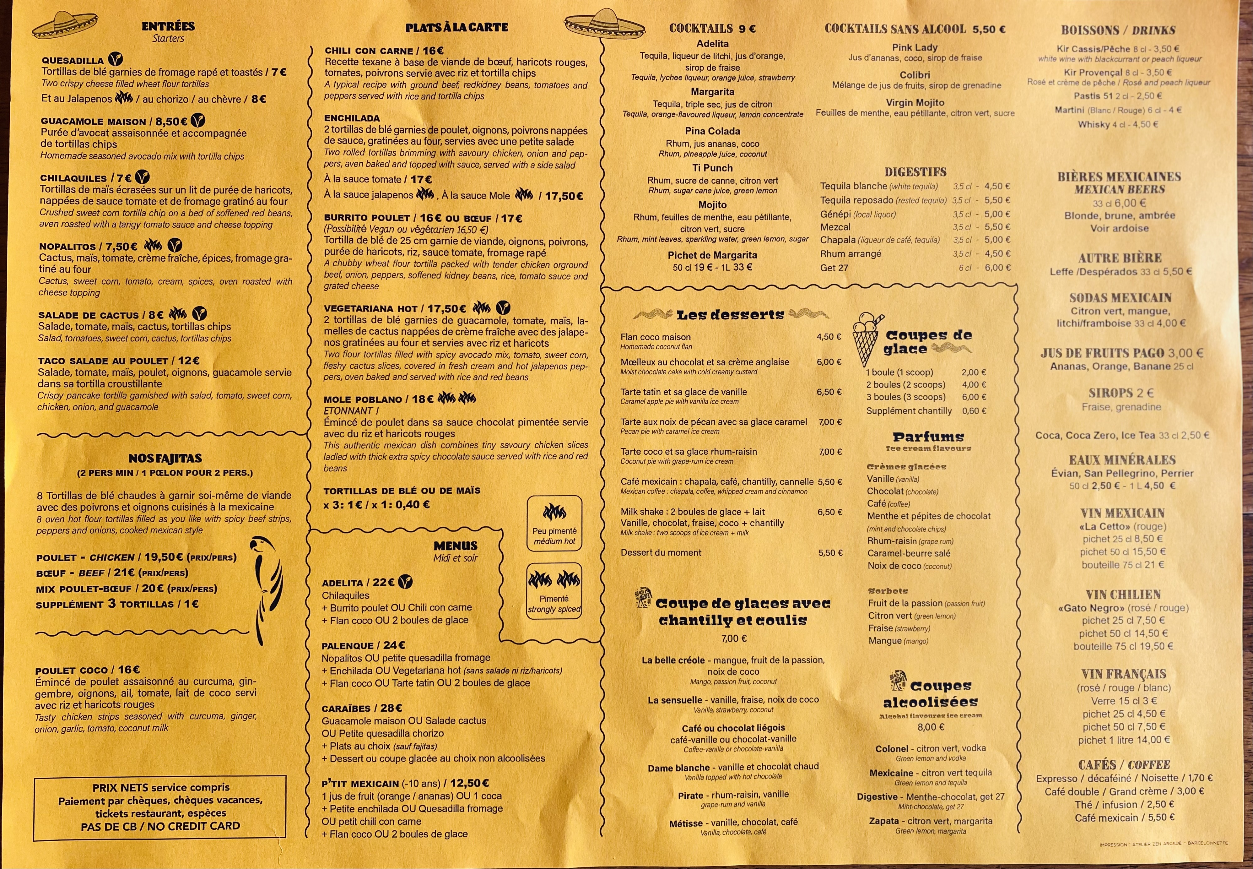 Fabienne et Alex, les restaurateurs sont adorables. Les repas Mexicains sont succulents pour un prix raisonnable. L'ambiance y est chaleureuse, le service rapide et les plats sont copieux. Un dépaysement garanti si vous avez pris soin de réserver bien à l'avance. Allez y , vous y retournerez .