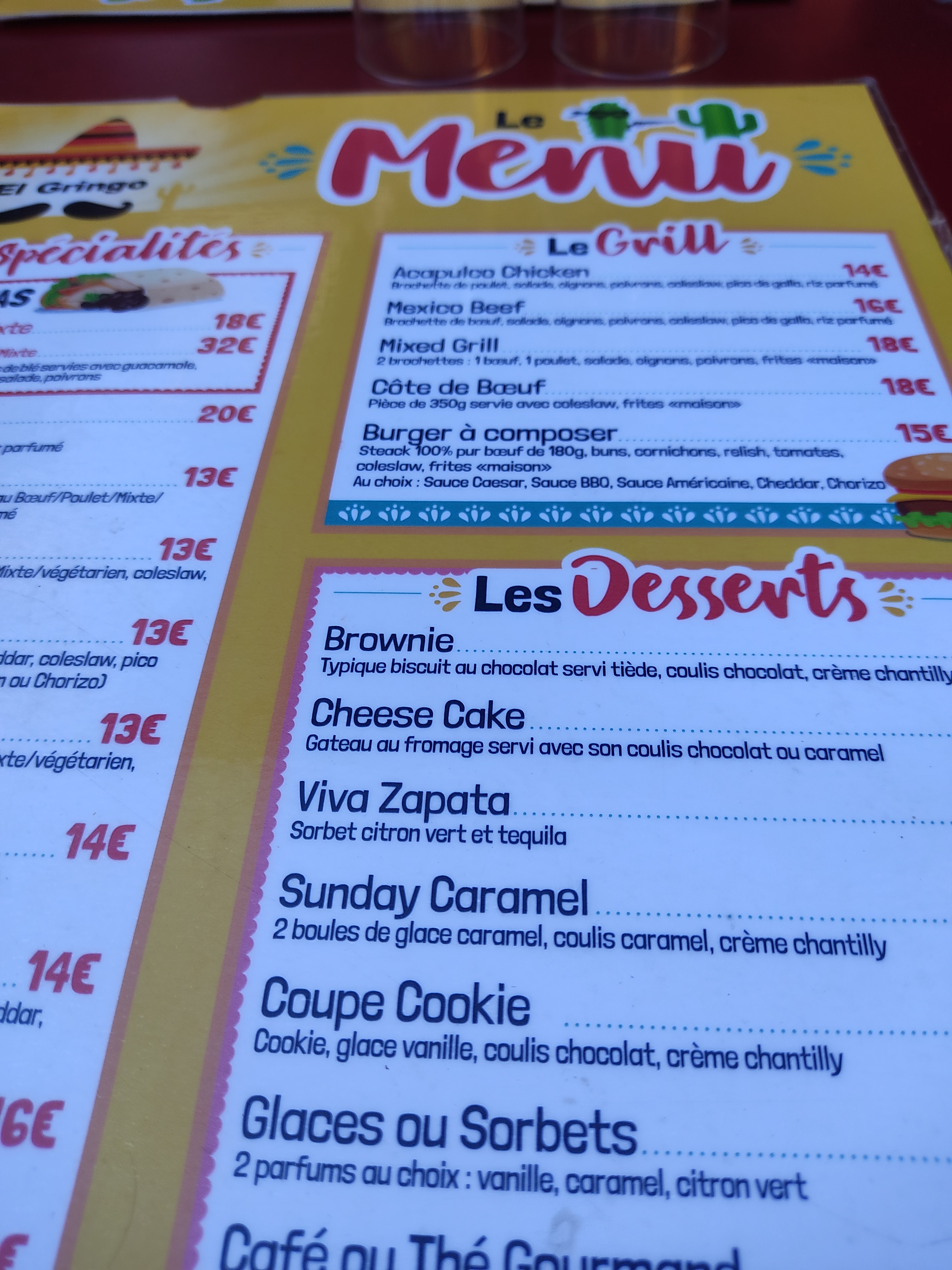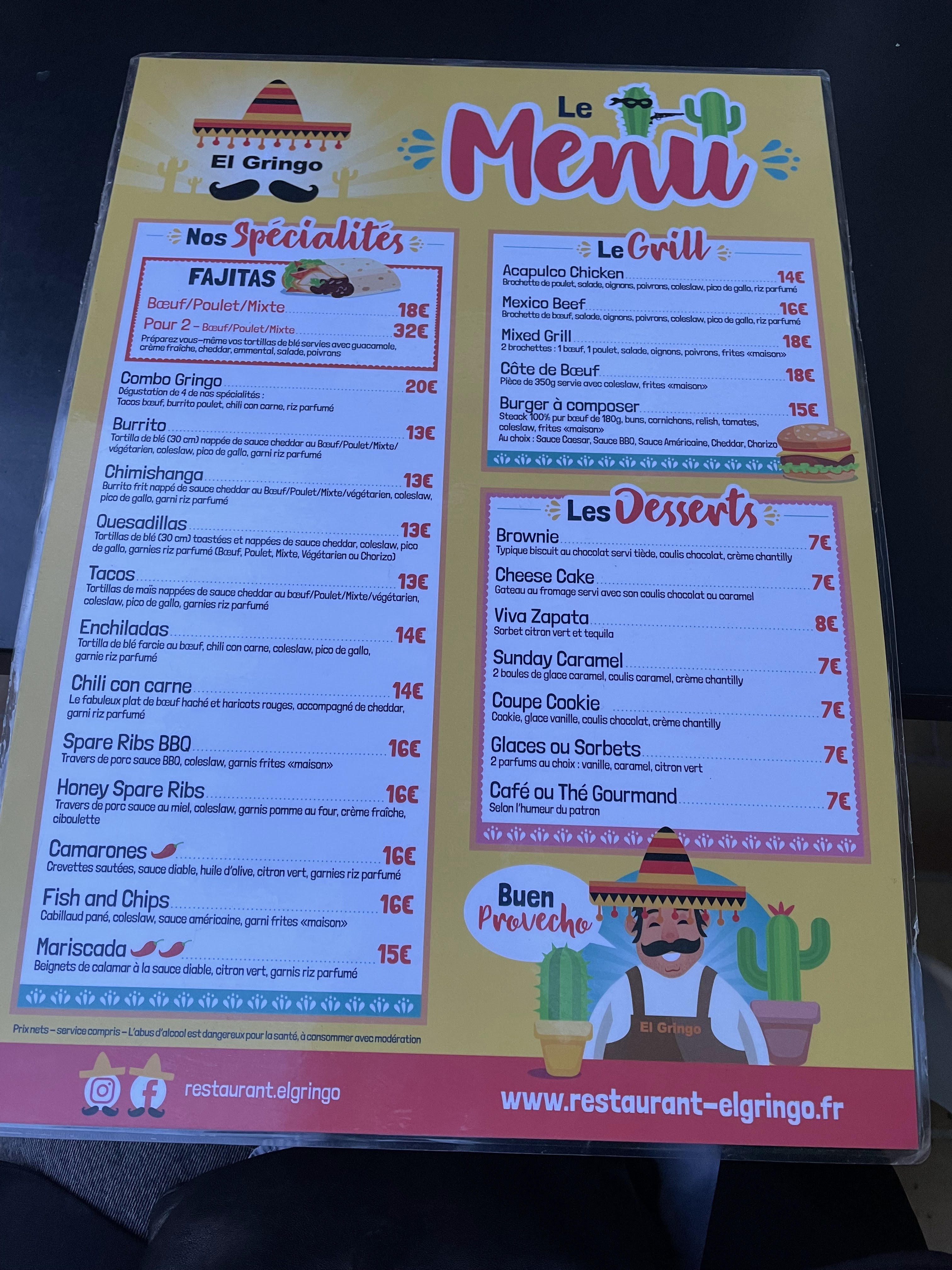 Posté le 12/06/2024 à 09:01"Un tex-mex que j'aime connu il y a plus de 10 ans, et je trouves comme valeur sûre. Une déco de qualité qui dépayse. Des plats bons, copieux et pour un prix décent. Mes garçons en ont profité petits et maintenant grands, et ça a tout été une belle expérience. Profitez en plus des cocktails à 3€ pendant le happy hour avant 20h. Merci à toute l'équipe El gringo !"