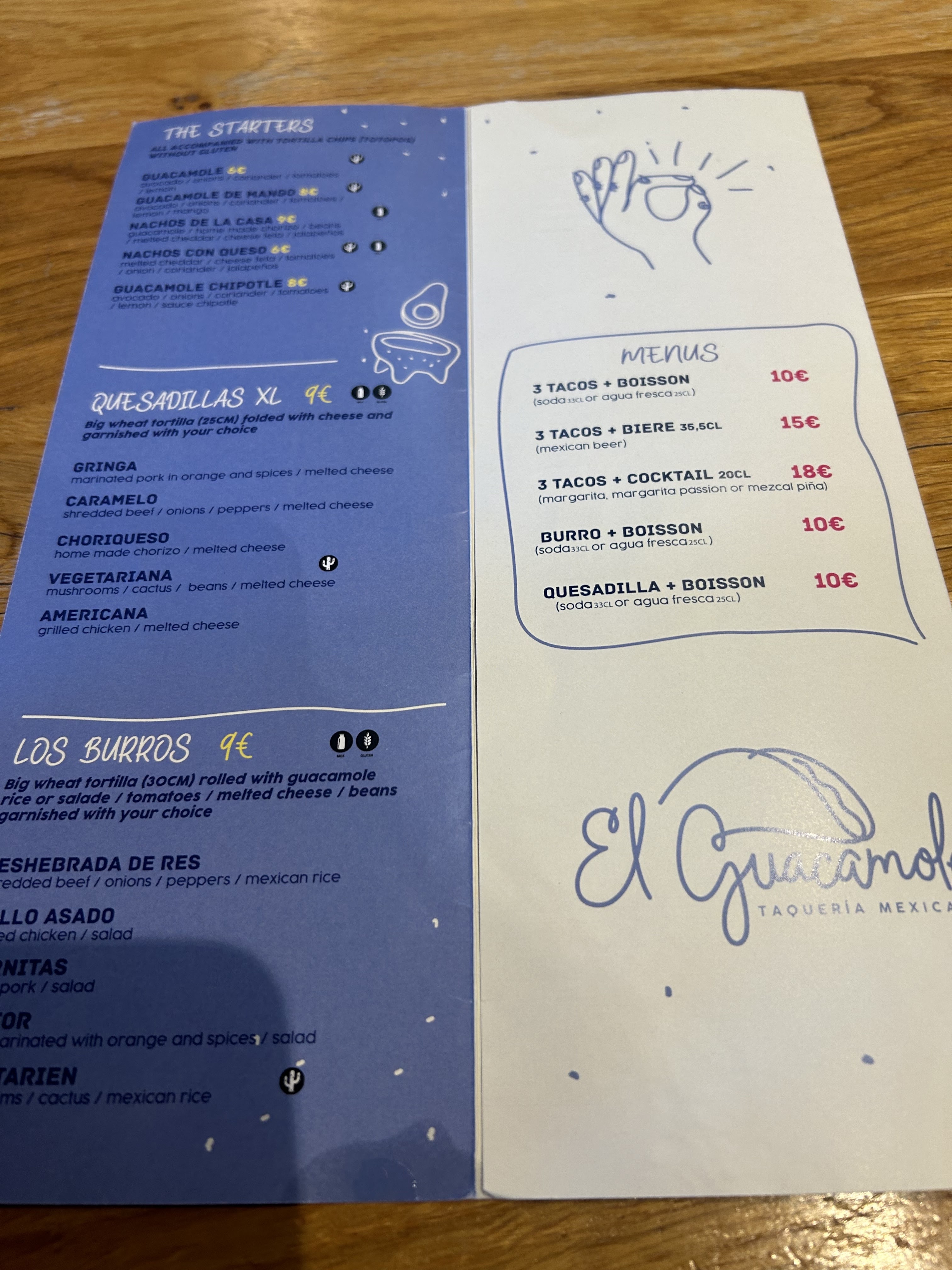 El guacamole est un petit restaurant mexicain, avec une jolie décoration, qui propose un menu avec 3 tacos que l on peut choisir parmis une liste d une vingtaine de choix. Entre les sans gluten, les végétariens et les classiques tout le monde trouvera sont bonheur. Ces derniers sont délicieux. Le guacamole y est très bon. Place assez sympas pour découvrir les tacos. Je recommande, le prix y est raisonnable.