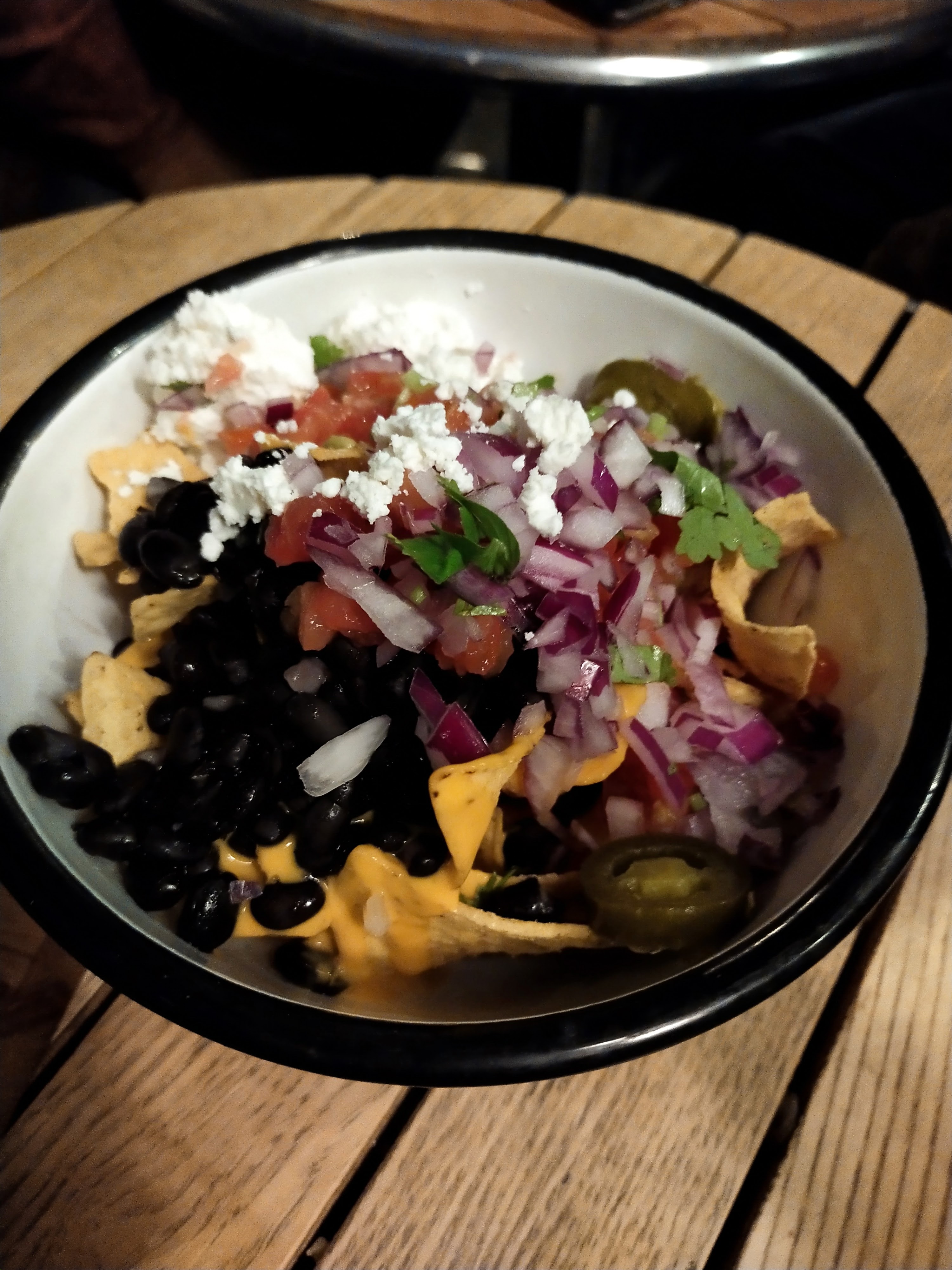 Mon frère vient souvent dans ce restaurant Il a donc voulu nous faire connaître ce lieu Plus de place à l'intérieur On nous propose la terrasse Il faisait un froid glacial, (23 décembre)et j'avoue que lorsqu'une table s'est libérée à l'intérieur j'étais ravie Nous avons pris 2 bols à partager qui étaient sincèrement délicieux : des tortillas cheddar guacamole ........excellents Menu Bebida à 10e avec 3 tacos au choix Je regrette juste que les tacos manquaient de saveur, poulet ou porc franchement je n'ai pas senti la différence en goût Le jus de tamarin était par contre délicieux. Une découverte pour moi Pas de toilettes sur place. Il faut se rendre dans un autre restaurant à quelques mètres, pas pratique du tout Conclusion : sans grand intérêt, je n'ai pas voyagé à travers ces plats, et un manque de saveurs certain !!!!