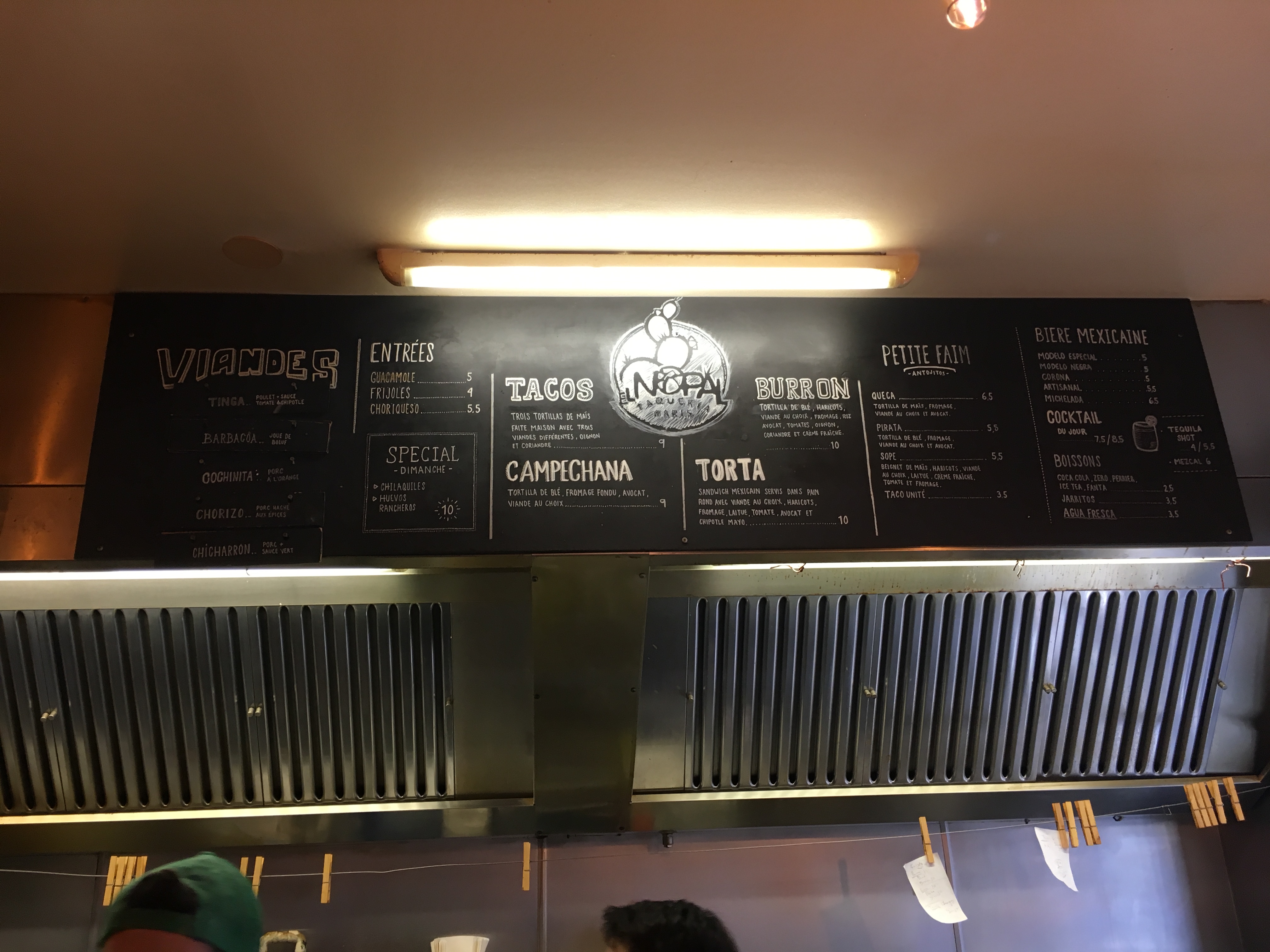 Posté le 14/09/2023 à 02:56"J’étais à El Nopal pour un repas avec une copine. Le lieu est petit mais a pas mal de places pour s’arrêter manger, à l’intérieur et à l’extérieur. En plus on a grande visibilité sur la cuisine. Pour ce qui concerne la nourriture, le taco était très bon, mais je n’ai pas trop apprécié les garnitures. On peut sélectionner les garnitures entre 2 choix de bœuf , 1 poulet et 2 de porc. J’ai pris les 2 boeuf et le poulet, j’ai vraiment aimé juste une garniture au bœuf. Aussi un peu trop de coriandre. Dans le cadre général c’était pas mal, mais vue que le local est authentique je m’attendais un peu plus."
