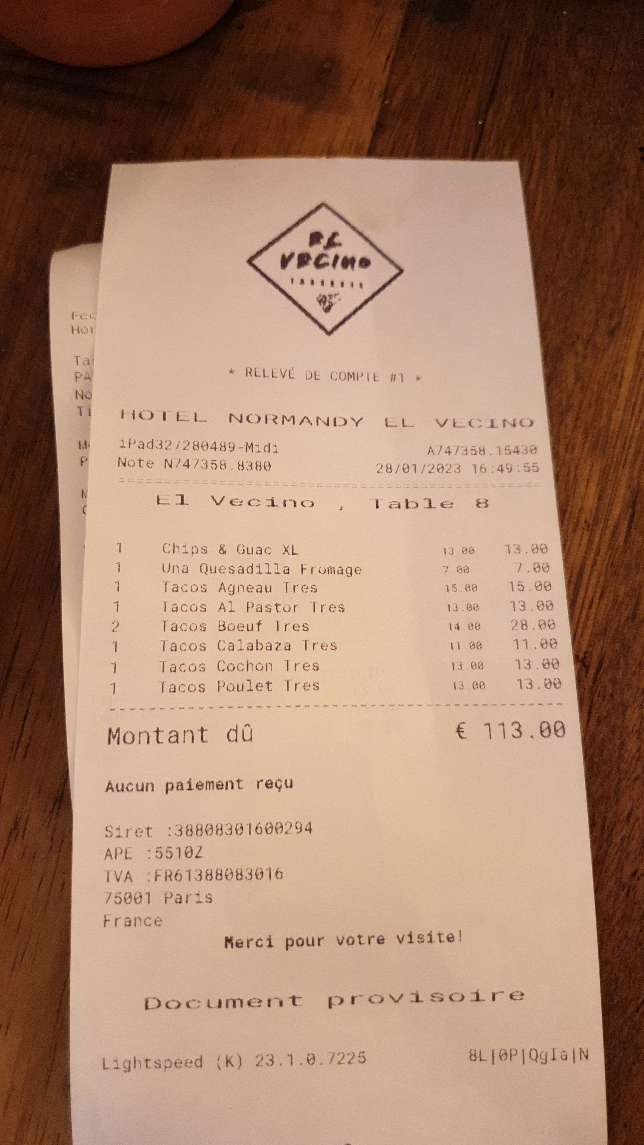 Bonjour Andy, Merci beaucoup d’avoir pris le temps de porter ce problème à notre attention. Étant très soucieux de la satisfaction de nos clients, nous prenons en compte votre retour et veillerons à ce que ce problème ne se reproduise plus. Nous serions ravis de vous voir revenir dans notre établissement, pour une bien meilleure expérience. Vous pouvez nous contacter afin de mieux comprendre ce qu’il s’est passé, et trouver une solution qui vous convient. [email protected] Encore toutes nos excuses, L’équipe de El Vecino