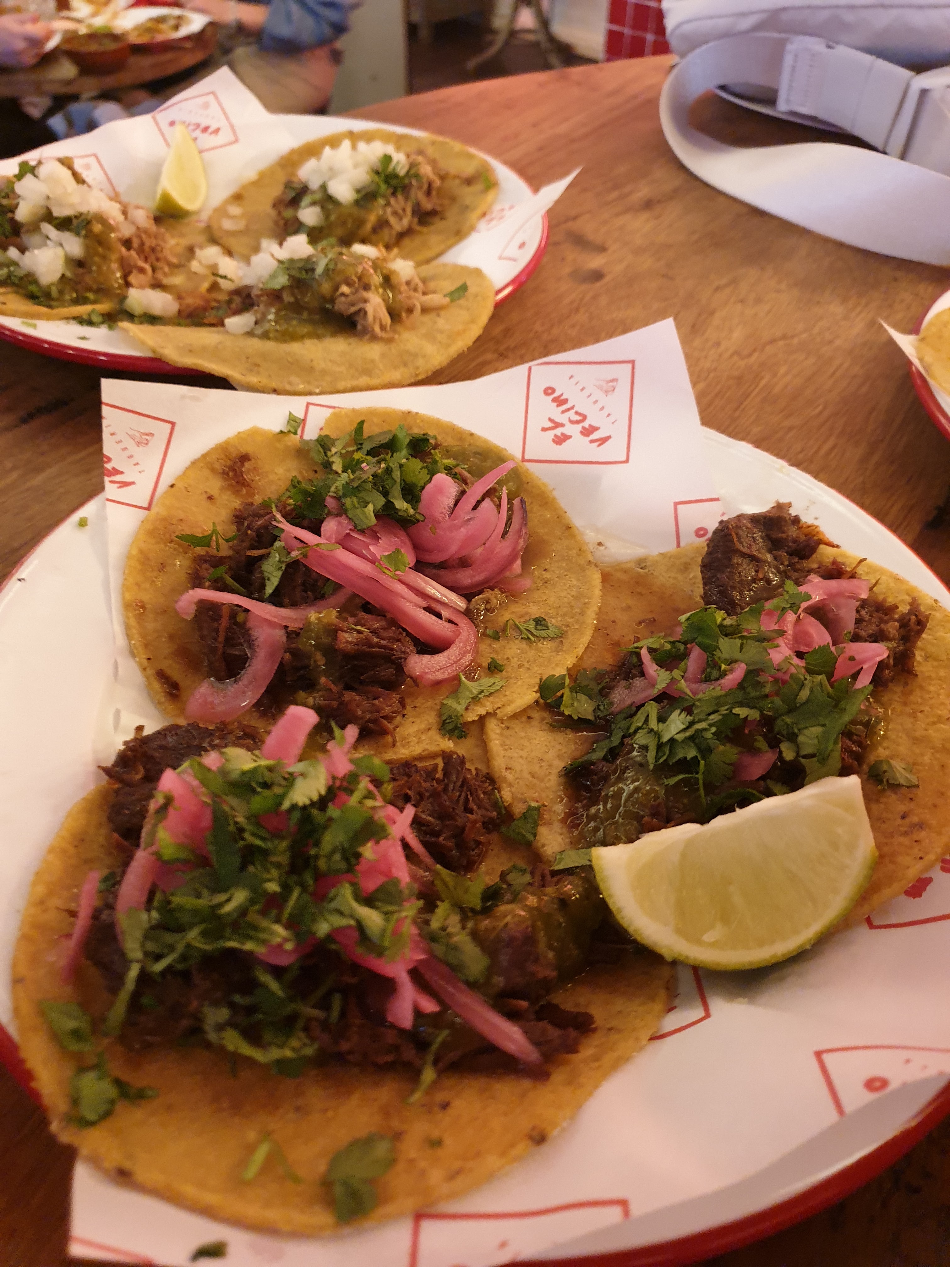 Posté le 12/04/2024 à 21:27" C'est un endroit idéal pour de VRAIMENT bons tacos. Le guacamole était une source d'inspiration. Comment lui donnent-ils ce goût citronné sans l’amertume ? Si bon! Et le service avec le sourire ne fait qu'améliorer tout le reste. Merci El Vecino ! Je serai bientôt de retour. "