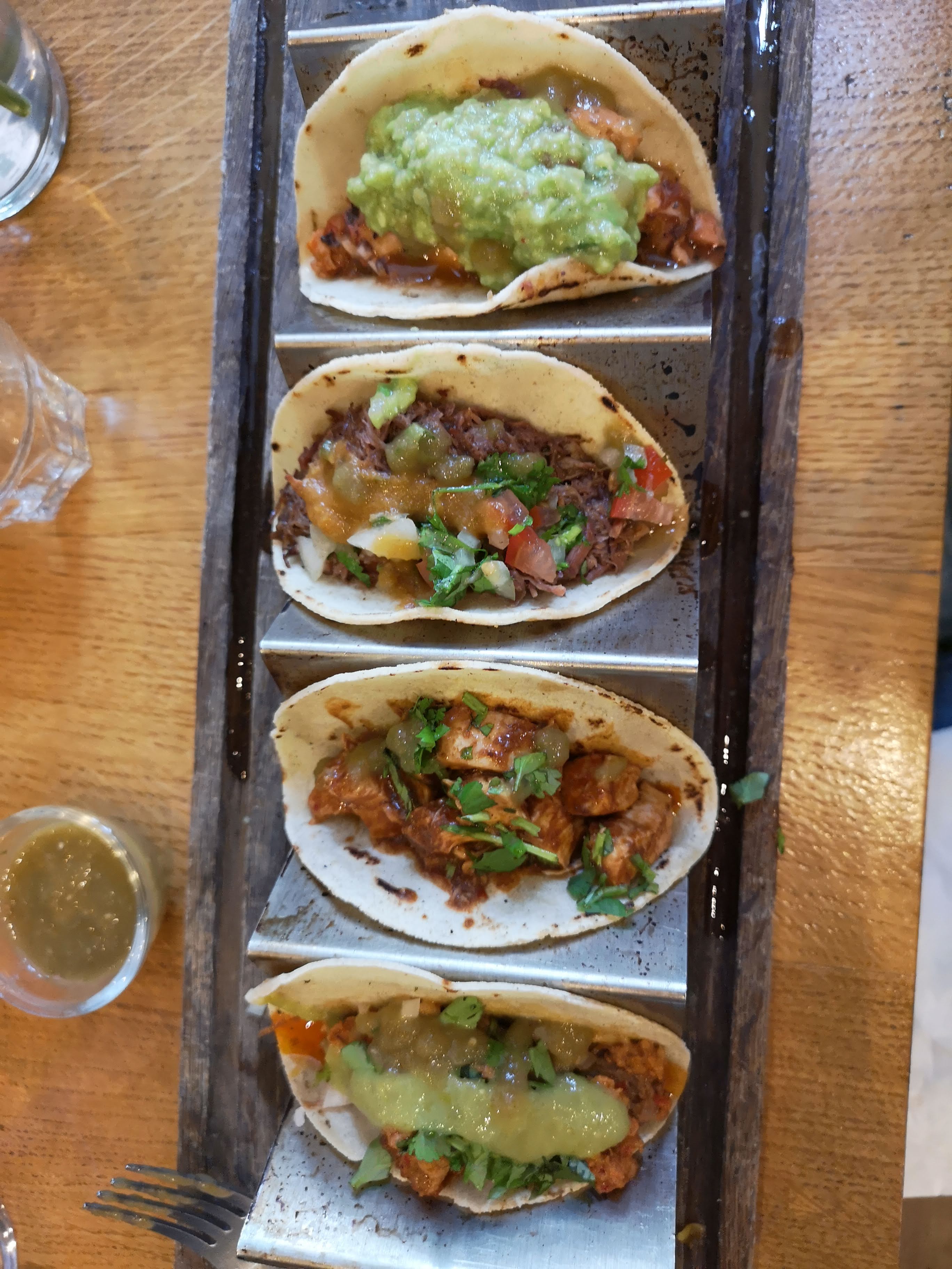 Posté le 08/11/2024 à 15:25"La première fois que je remange de bons tacos (les vrais, pas les lyonnais) depuis la découverte que j'en avais fait aux US. Le rapport prix/portion est correct, et les saveurs sont bonnes, mais j'aurai personnellement préféré des portions légèrement plus grandes. Les saveurs des tacos au choix sont bonnes, et celles des tacos doubles (ex: au poulpe) sont encore meilleures. D'ailleurs je vous conseille de le faire dans ce sens car sinon vous risquez d'être déçu. Jai trouvé la qualité de l'association des saveurs pour le pulled-pork pas incroyable - ça reste bon attention - et celui au poisson n'a pas une superbe esthétique au regard par contre il ravira vos papilles (c'est celui dont je garde le meilleur souvenir - probablement dû à un bon contraste saveur / texture par rapport aux deux autres). Le service était variable en fonction des serveurs, car nous en avons eu deux (du passable à bon) - la prise de commande paraissait robotique. Globalement une bonne expérience, j'y retournerai très probablement et je recommande !"