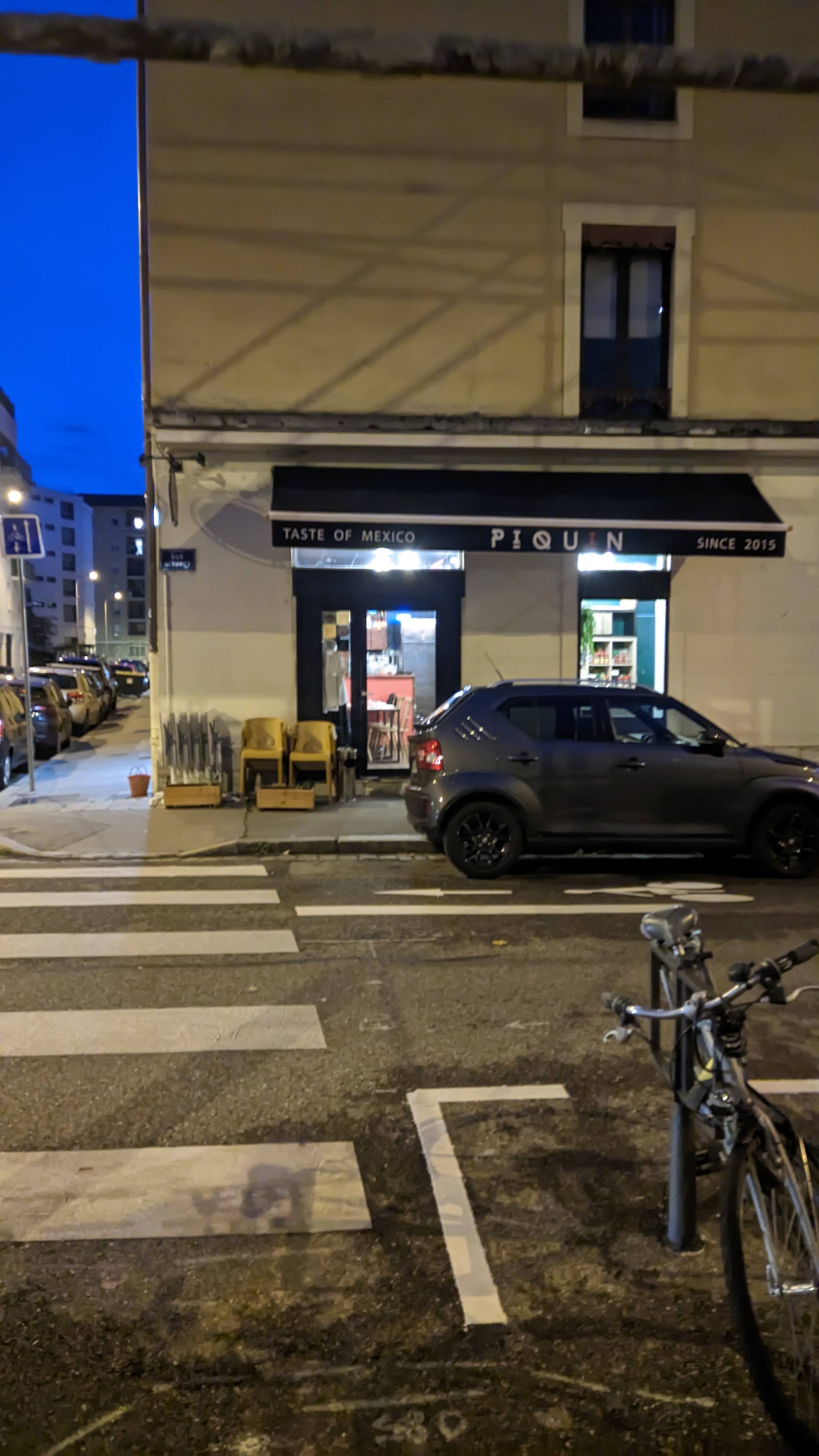 Posté le 02/06/2024 à 18:40"Holà Chicos ! Me gusta Piguin!!! À deux pas de la Part Dieu en plein Lyon, mets un peu de piment dans ta vie, comme dirait l’autre !!!! En famille, nous avons découvert les délices de la cuisine mexicaine authentique. Quelle agréable surprise entre le ceviche et les tacos faits maison, c’est un vrai régal ! Le tout accompagné d’une bière Pacifico et d’un petit vin blanc chilien... Un aller simple à Mexico City !! Le dessert était tout simplement incroyable ! Nous avons vraiment bien mangé, c’était un pur plaisir. L’ambiance était top ! Il ne manquait que la dégustation de spiritueux, histoire de se sentir transporté à Guadalajara et danser sur les tables... En tout cas, ça klaxonne Merci pour l’accueil et bravo à toute la brigade. Gros succès !!! #restaurant #lyon"