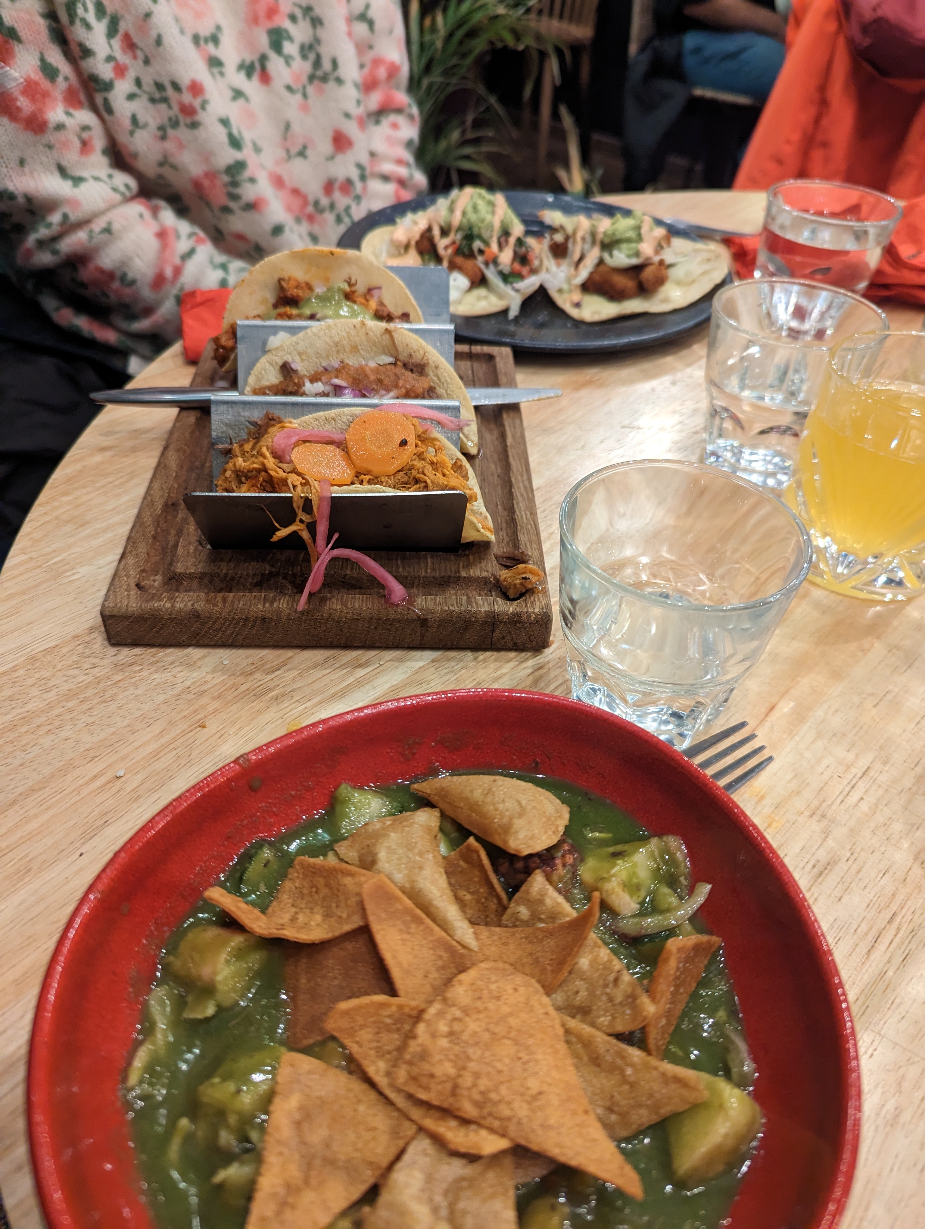 Posté le 21/11/2024 à 19:00"Mes amies mexicaines m'avaient dit que c'était le meilleur endroit de la ville poir manger mexicain et en effet, on ferme les yeux la bouche pleine et hop on est transporté dans une rue de Puebla. Il faut bien penser à réserver car forcément, quand c'est bon, c'est archi plein. J'y suis allée avec une de mes filles pour son anniversaire et retournée hier soir avec un ami pour lui faire découvrir la cuisine mexicaine. On s'est régalés et clairement prochaine sortie copines ou famille, ou amoureux, j'y retourne direct. Objectif : goûter toute la carte et retrouver un peu de soleil pour garder le sourire tout l'hiver 🍋🟩🥑🌶🌮🌮"