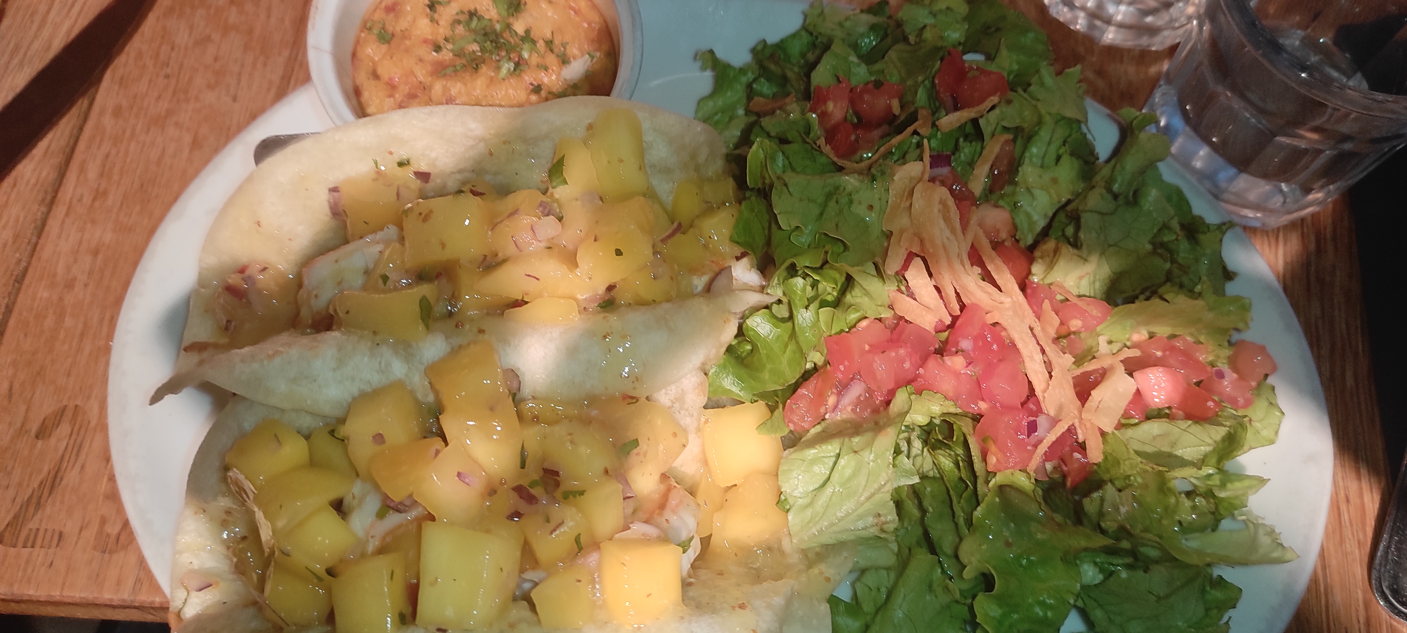 Plutôt moyen. On y avait mangé il y a 3 ans et c'était excellent. Malheureusement cette fois-ci, l'ensemble était moyen. Les tacos d'agneau n'avaient que très peu de viande, ils étaient bourré de salade et pas particulièrement goutus. Les nachos étaient plutôt bons car servis chauds. Il y avait suffisamment de guacamole mais extrêmement peu de salsa (le truc qui coûte rien), du coup pas assez de sauces pour tout les nachos. Le cookie mi cuit était bon. Vraiment dommage pour les tacos. J'en ai mangé des bien meilleurs ailleurs.